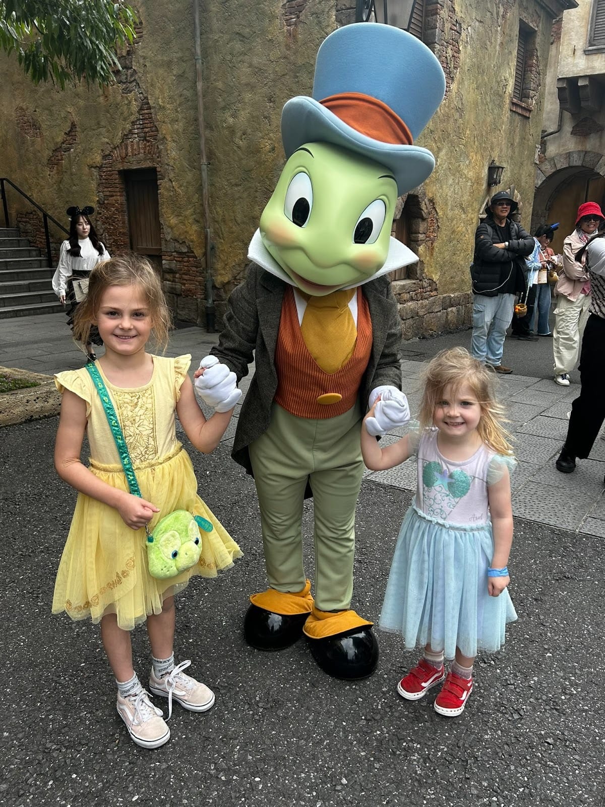 We were also delighted to meet rare characters like Jiminy Cricket and the mice from Cinderella—ones you don’t often see in other parks!