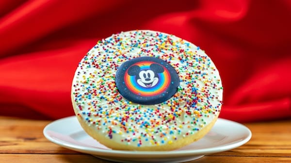 - Pride Cupcake: Vanilla cupcake with rainbow sprinkles and berry marmalade, topped with red berry buttercream, rainbow sprinkles, rainbow glitter, and a chocolate Mickey pride coin.