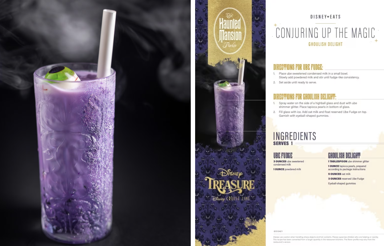 Indulge in a tempting selection of ghostly cocktails that capture the true spirit of The Haunted Mansion. Even better, the Haunted Mansion Parlor team has shared some frighteningly fun recipes, so you can recreate these chilling concoctions at home. Unearth delights like: